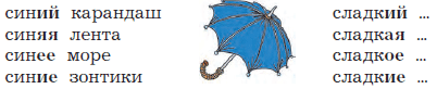 Прочитай. Понаблюдай за тем, как изменяются имена прилагательные. Что ты напишешь вместо точек? Спиши. Выдели окончания прилагательных.
