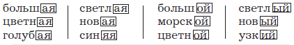 Прочитай. Поставь ударение в словах. Какие окончания под ударением, а какие – без ударения? Как ты думаешь, можно ли допустить ошибки в написании окончаний имён прилагательных? В каком случае?