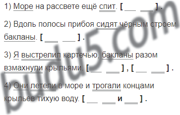 Море на рассвете ещё спит. Вдоль полосы прибоя сидят чёрным строем бакланы*. Я выстрелил картечью*, бакланы разом взмахнули крыльями. Они летели в море и трогали концами крыльев тихую воду.