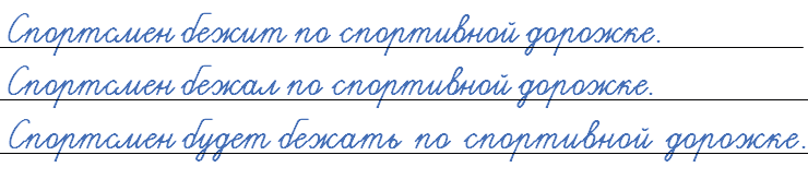 • Составьте и запишите три предложения. В первом употребите глагол бежать в форме настоящего времени, во втором - в форме прошедшего времени, в третьем - в форме будущего времени.