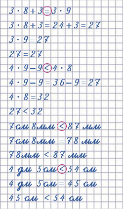 3 • 8 + 3 = 3 • 9  7 см 8 мм < 87 мм