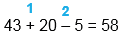 1) 43 + 20 = 63 2) 63 - 5 = 58 |