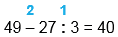 1) 27 : 3 = 9 2) 49 - 9 = 40 |