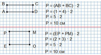 Периметр любого многоугольника равен сумме длин всех его сторон. В прямоугольнике противоположные стороны равны, поэтому, чтобы найти периметр прямоугольника, можно сумму длины и ширины этого прямоугольника умножить на 2.