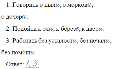 Укажите номера строчек, в которых у всех имён существительных нужно писать окончание -и. Ответ проверьте в конце рабочей тетради.