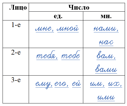 Мне, ему, его, тебя, мной, тебе, ей, нами, им, вам, нас, вами, их, ими.