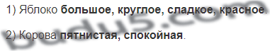 Назови признаки: 1) яблока - по величине, форме, вкусу, цвету; 2) коровы - по окрасу, хорактеру.