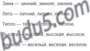 От каждого существительного образуй прилагательные всех трёх родов.