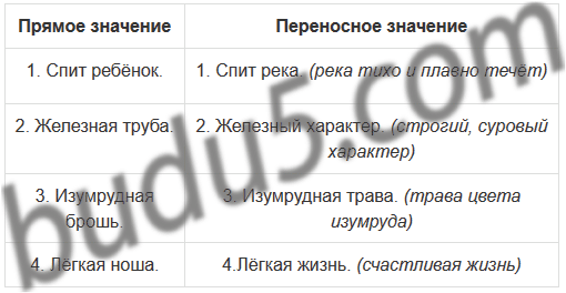 Памятка: прямое и переносное значение слова.