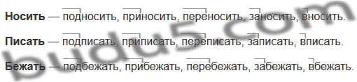 Образуйте новые слова с приставками под-, при-, пере-, за-, в- от глаголов носить, писать, бежать и запишите их.