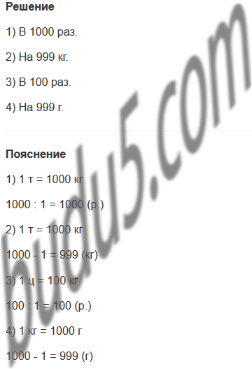 3) Во сколько раз 1 кг меньше, чем 1 ц?