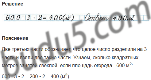 92. Площадь огорода 600 м2. Две третьих части заняты свёклой. Сколько квадратных метров занято свёклой?