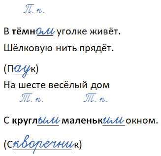 Прочитайте загадки. Допишите пропущенные окончания. Запишите отгадки. Над выделенными именами прилагательными укажите падеж.