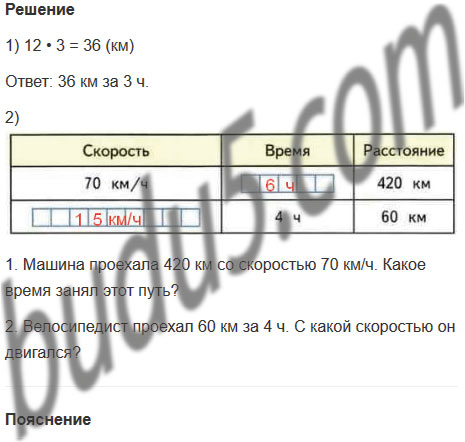 2. 1) Велосипедист ехал со скоростью 12 км/ч. Сколько километров он проехал за 3 ч?