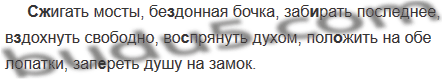 ..жигать мосты, бе..донная бочка, заб..рать последнее, в..дохнуть свободно, во..прянуть духом, пол..жить на обе лопатки, зап..реть душу на замок.
