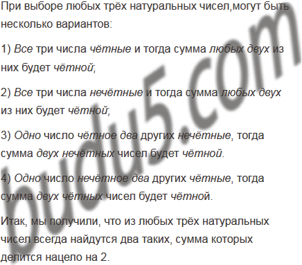 Верно ли, что из любых трёх натуральных чисел всегда найдутся два таких, сумма которых делится нацело на 2?