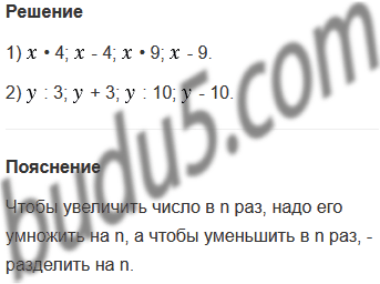 а) Увеличь число х: в 4 раза; на 4; в 9 раз; на 9.