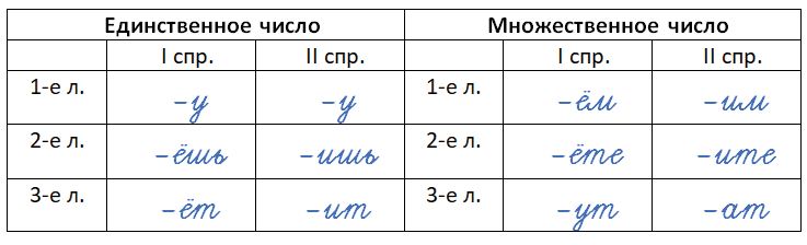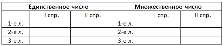 Прочитайте. Проспрягайте устно глаголы верну́, спешу́. Впишите в таблицу окончания этих глаголов соответственно их спряжению.