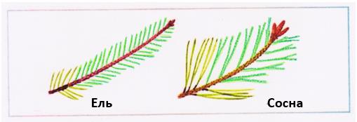 Вторая веточка – это веточка сосны. У неё иголки длинные и растут по две.