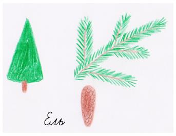 Зарисуйте рассмотренные вами веточки, хвоинки, шишки. Рядом нарисуйте силуэт дерева, которому они принадлежат.