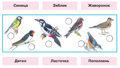 1. Знаете ли вы этих птиц? Соедините линиями рисунки и названия. Проверьте себя по учебнику или атласу - определителю.