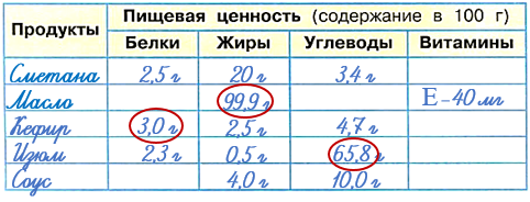 Цель работы: узнать, какие питательные вещества и в каком количестве содержатся в разных продуктах.