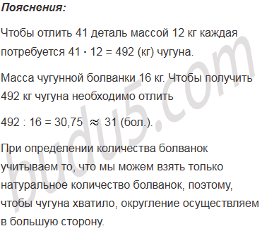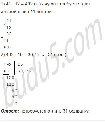 Масса чугунной болванки 16 кг. Какое наименьшее количество болванок потребуется, чтобы отлить 41 деталь массой 12 кг каждая?