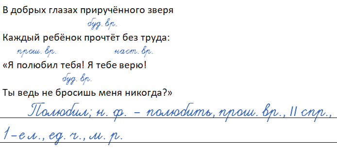 • Выпишите любой глагол и определите его признаки: н. ф., время, спряжение, лицо, число, род (для глаголов в прошедшем времени).