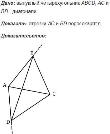 Докажите, что диагонали выпуклого четырехугольника пересекаются.