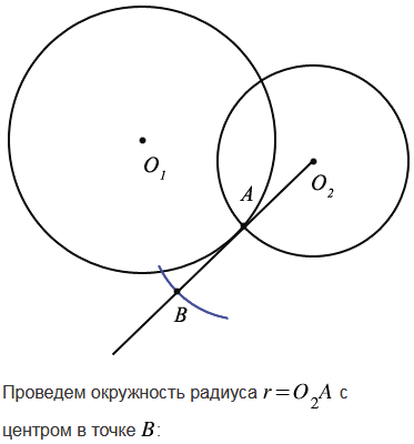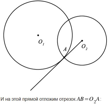 Даны две пересекающиеся окружности. Постройте отрезок, концы которого лежат соответственно на данных окружностях, а его середина совпадает с одной из точек пересечения данных окружностей.