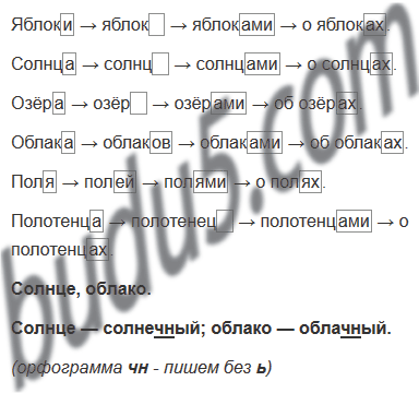 Запишите, пользуясь схемой, имена существительные яблоко, солнце, озеро, облако, поле, полотенце, употребив их в форме множественного числа указанного падежа. Выделите окончания.