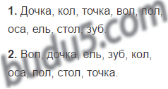 Удочка, укол, уточка, волк, полк, кос, щель, столб, зубр.