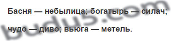 Басня, богатырь, чудо, небылица, вьюга, диво, силач, метель.