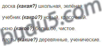 Назови предметы, которые ты видишь в классе. Какие слова-названия признаков к ним можно подобрать? На какие вопросы отвечают эти слова?