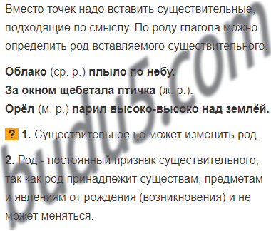 Прочитай. Какие имена существительные можно вставить вместо точек? Какого они будут рода? Как ты это определил? Запиши предложения. Укажи род всех имён существительных.