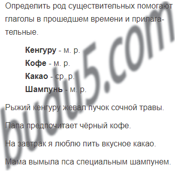 Определи род выделенных имён существительных. Какие слова помогли тебе? Запомни, какого рода эти существительные, чтобы правильно употреблять их в речи.