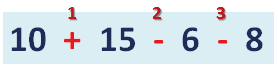 Определим порядок действий и запишем их над арифметическими знаками: так как нет ни умножения ни деления, действия выполняют по порядку слева направо: